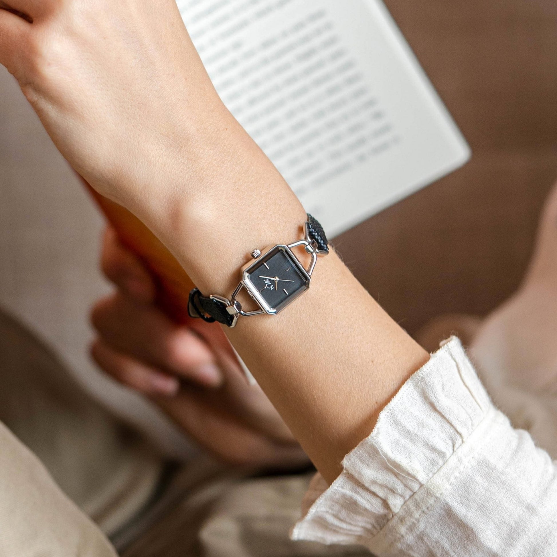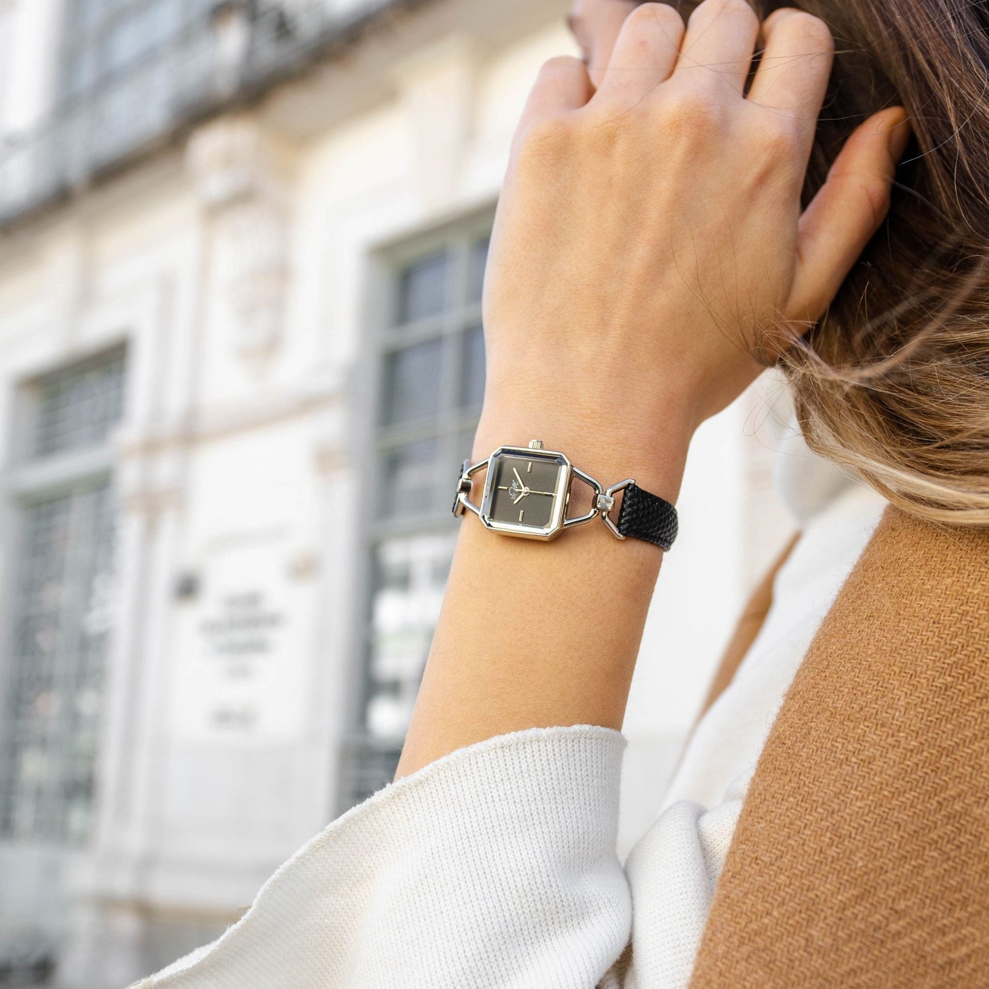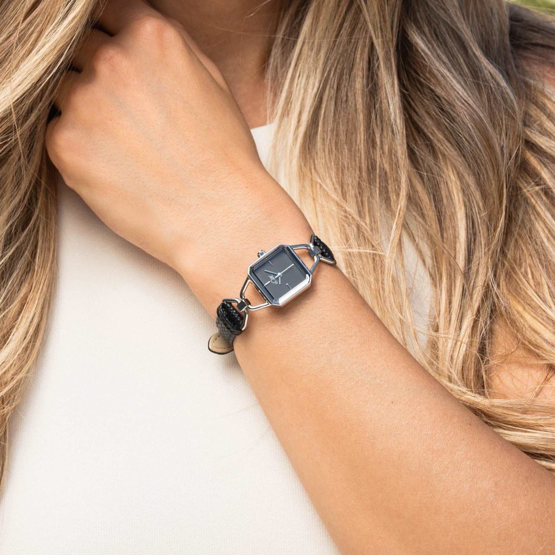 This luxurious watch has a clean and sophisticated look. The square watch dial features a minimalist design. If you look closely, the cut glass on the watch dial gives an added touch of style while the small watch face appears almost like a piece of jewelry. Wearing this piece will give you an eye-catching accessory that everyone will compliment. Ditch the big and bulky watches for this model which accentuates your elegance and femininity.